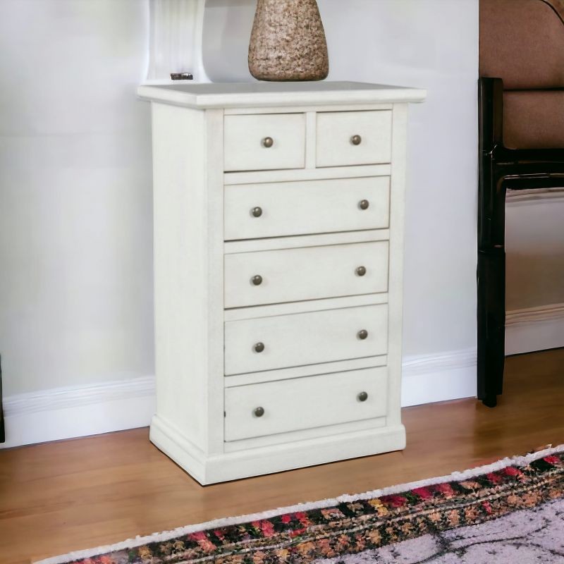 Cassettiera 6 cassetti in legno shabby bianco anticato 62x37X93