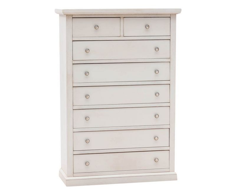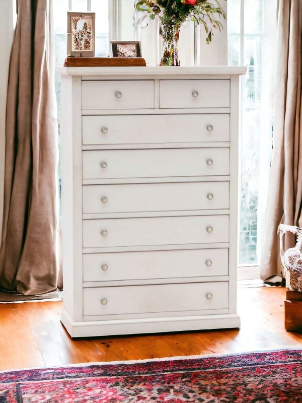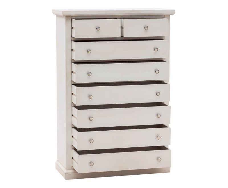 Cassettiera 8 cassetti legno bianco anticato pomoli argento 87x40X126