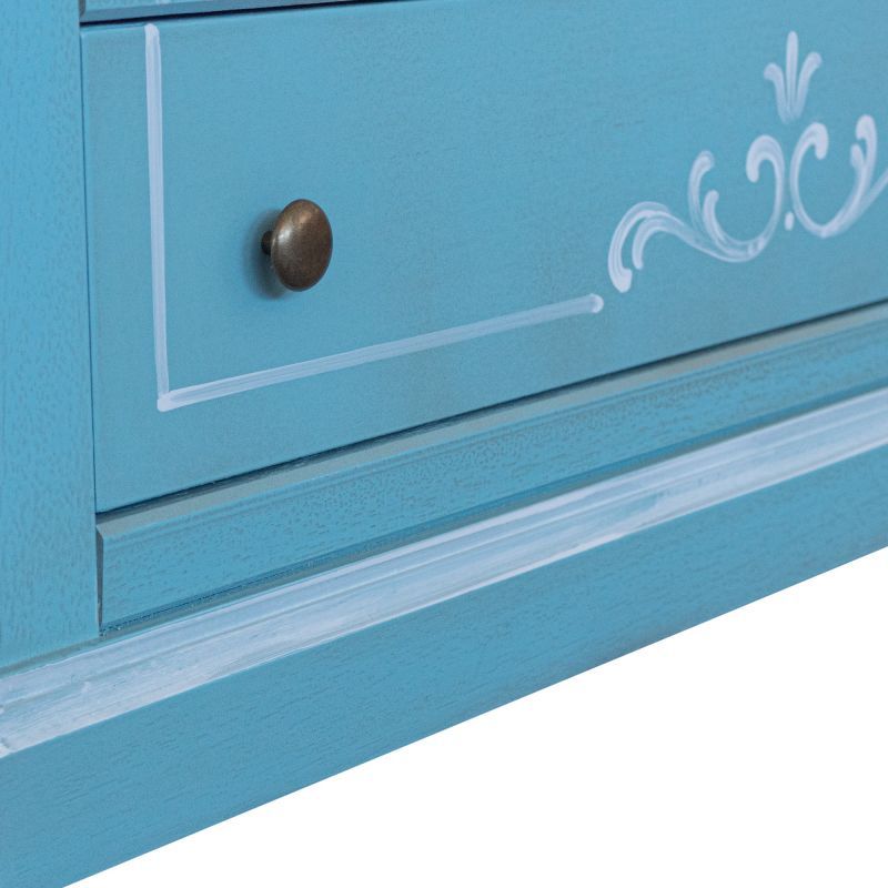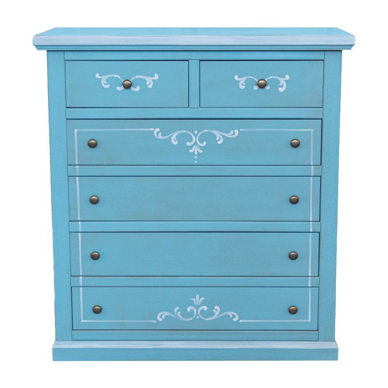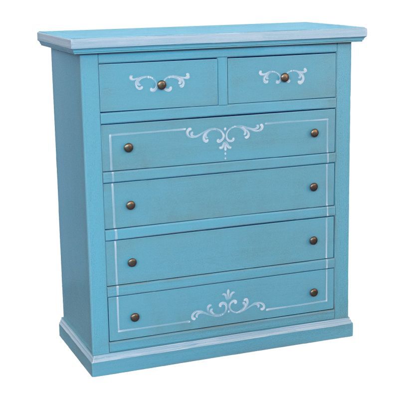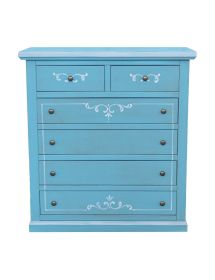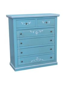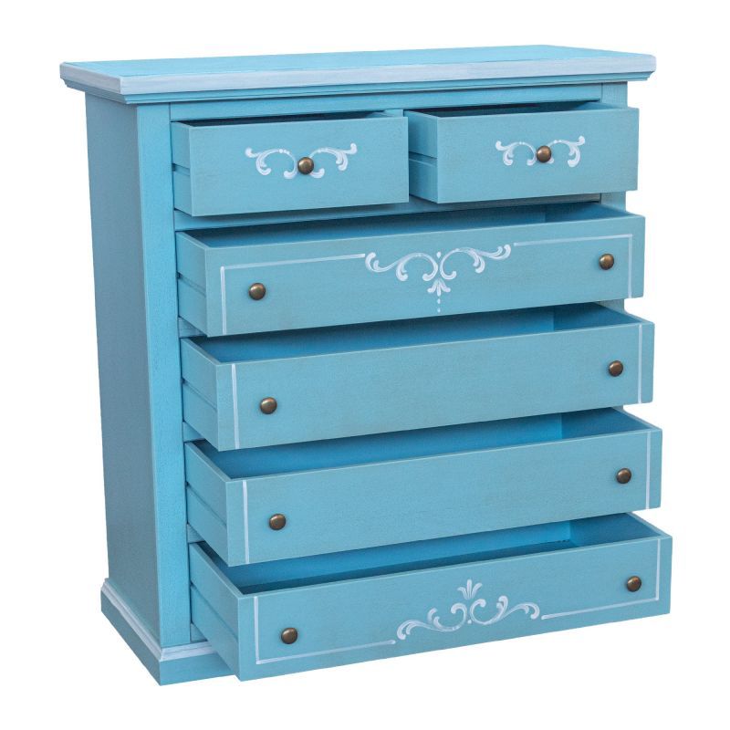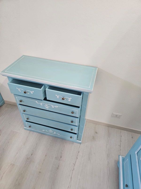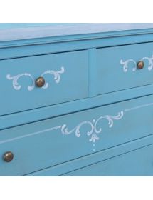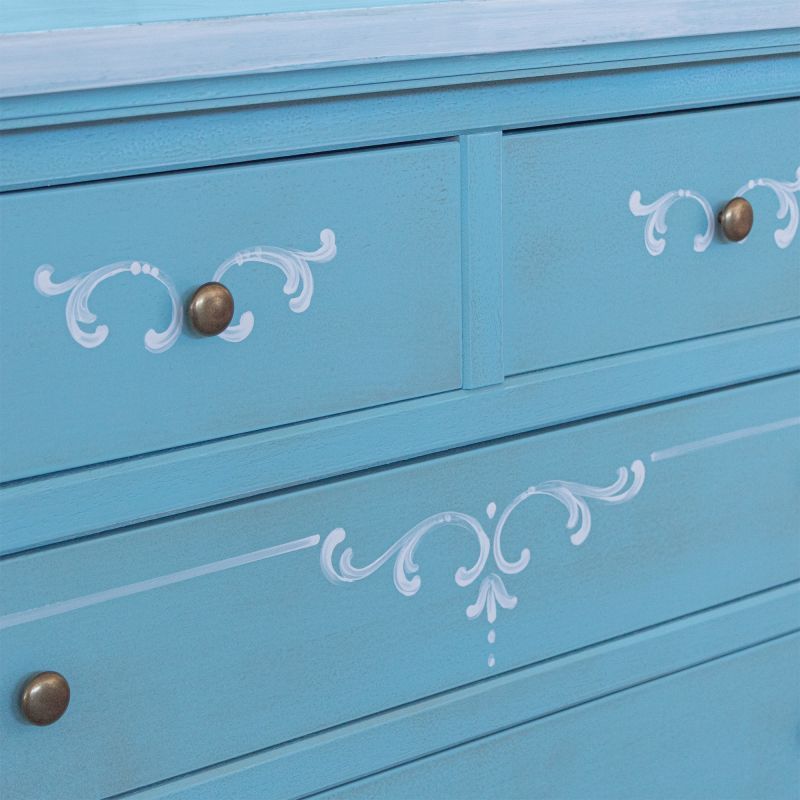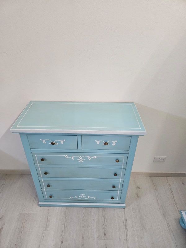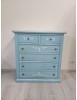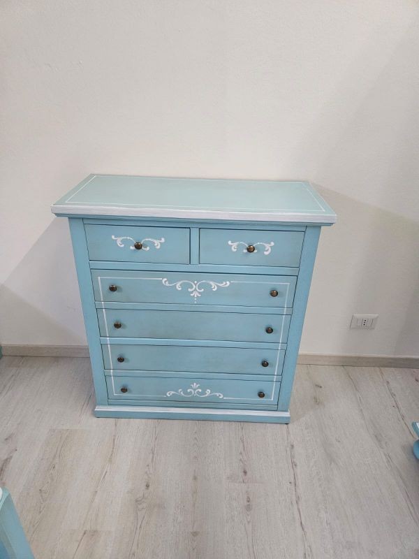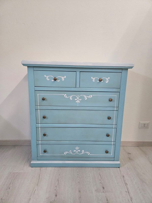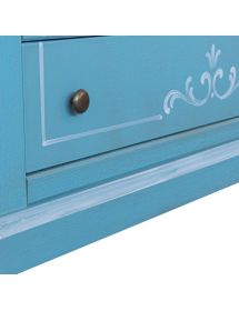 Cassettiera 6 cassetti in legno shabby azzurro anticato decorato 86x40X96