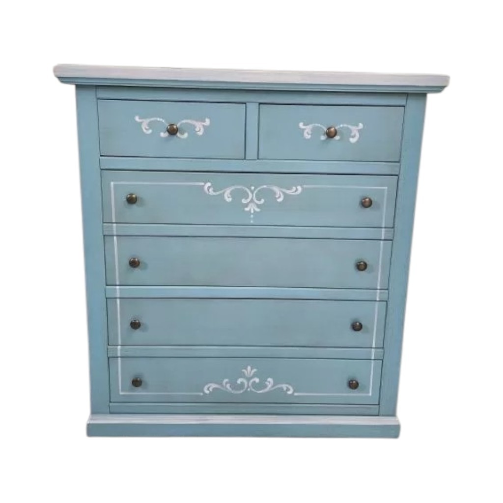 Cerchi un complemento d’arredo capace di unire eleganza e praticità? Dai un’occhiata a questa bellissima cassettiera azzurra shabby chic con 6 cassetti, una soluzione intelligente e raffinata per rendere i tuoi spazi più belli e funzionali.