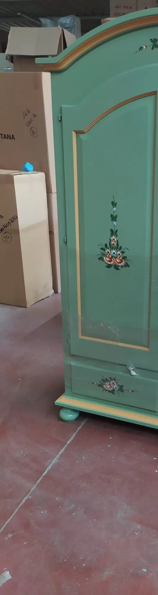 FINITURA : Laccato verde con profili oro e decori floreali dipinti a mano .