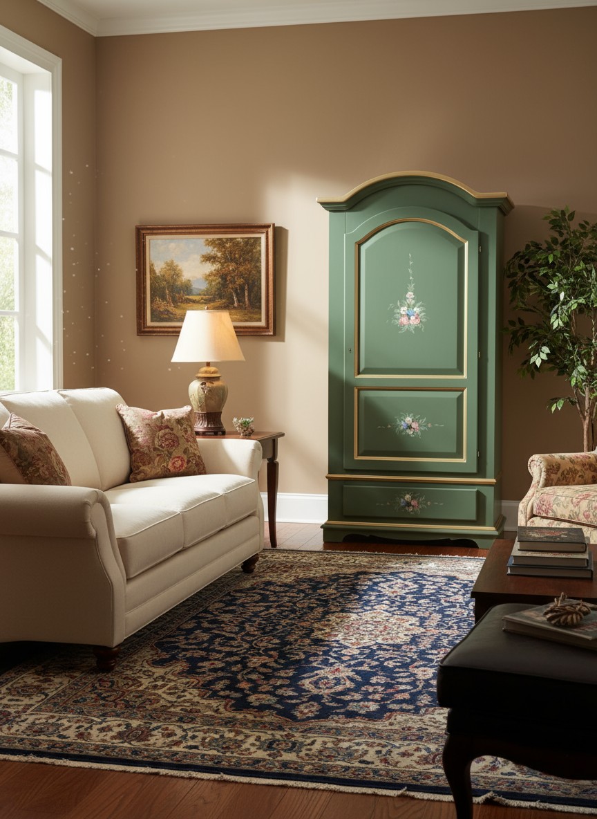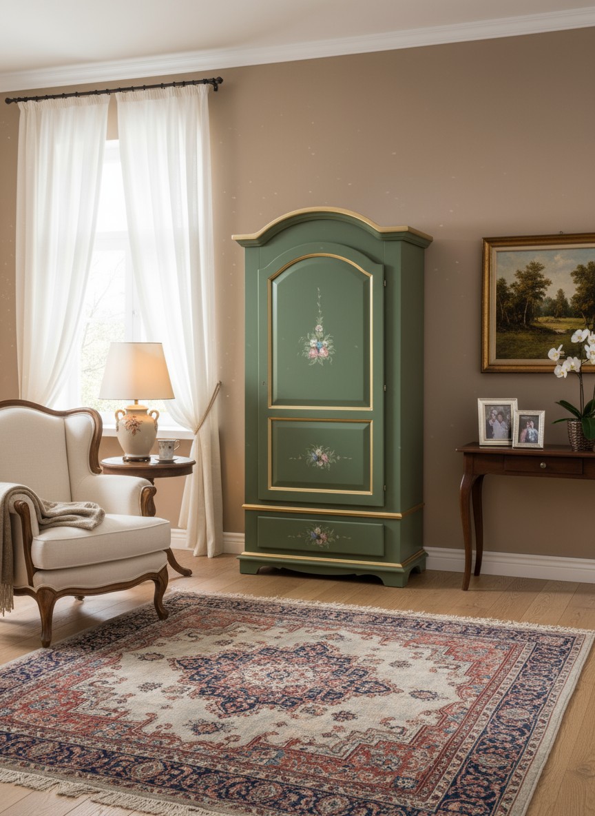 Armadio Classico 1 Anta Shabby legno verde decori filo oro 96x56x196
