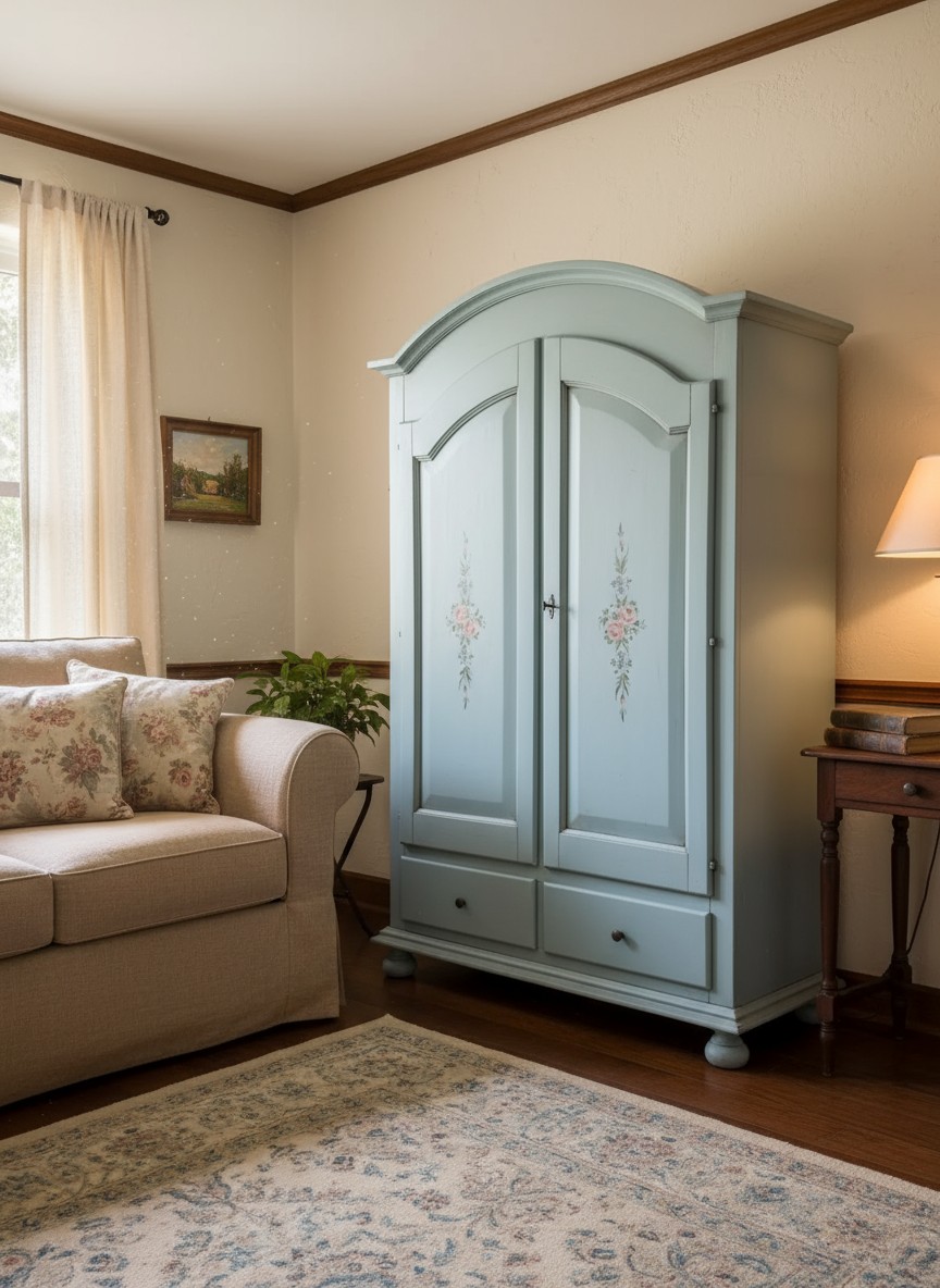 STRUTTURA DELL'ARMADIO LACCATO CERATO AZZURRO EFFETTO VINTAGE