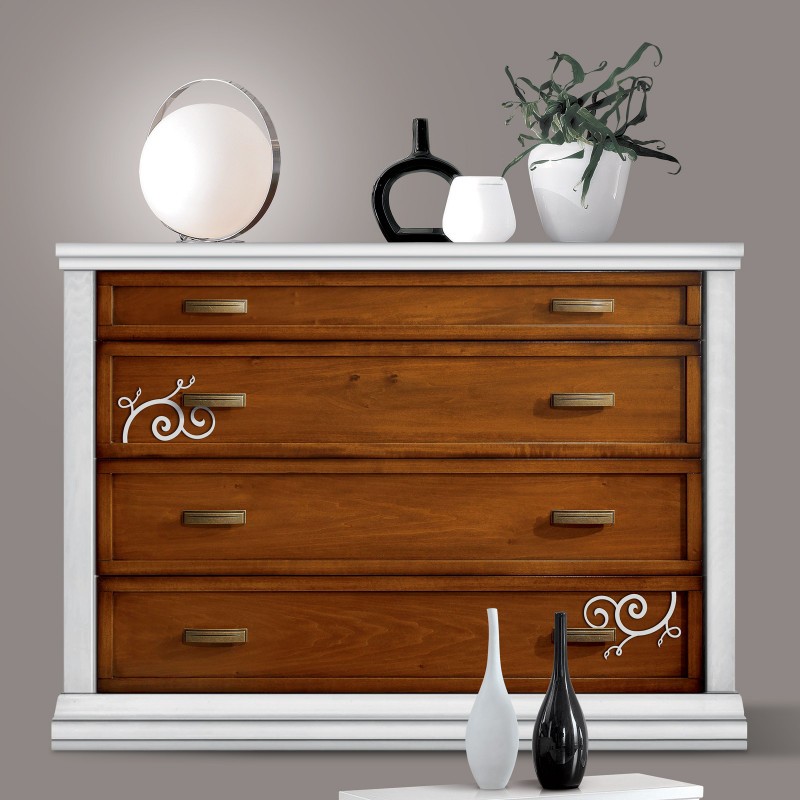 - 1 comò classico con 4 cassetti con decori in rilievo: Larghezza 128 cm x Profondità 55 cm x Altezza 95 cm