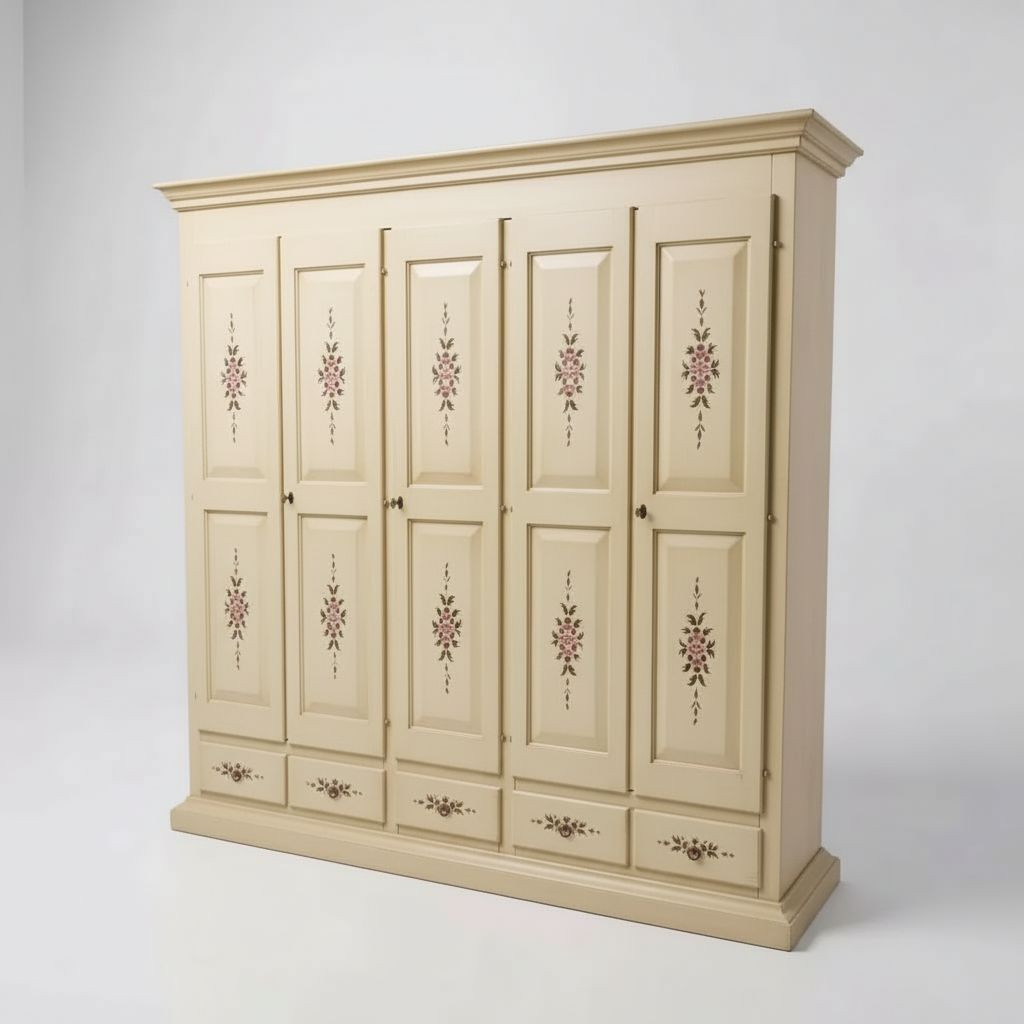 Armadio shabby 5 porte legno avorio anticato decorato decori 254X61X240
